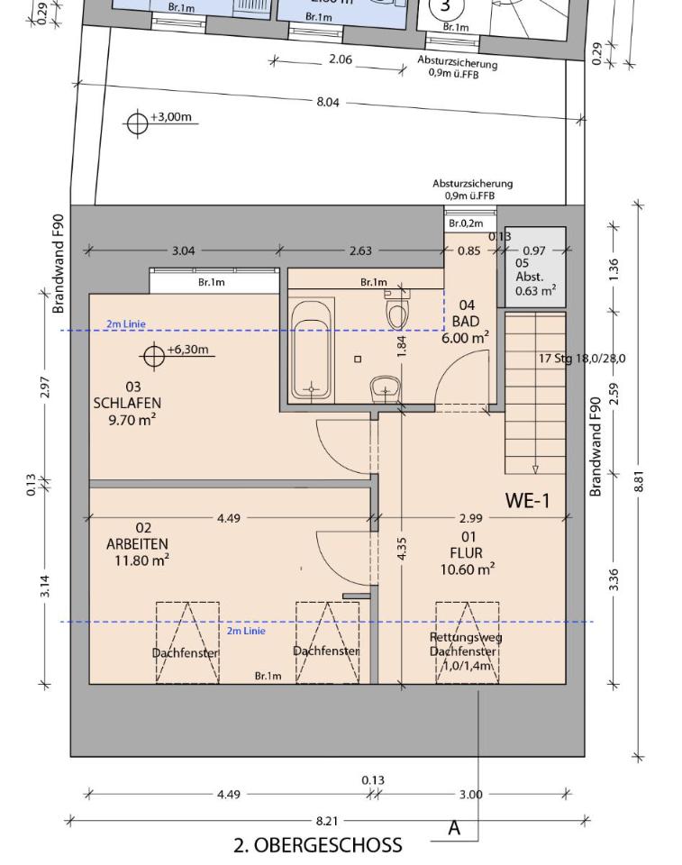 Whg-2 Whg. mit ca. 41 m² im 1. OG: Flur, Wohnzimmer, Küche, Schlafzimmer, Bad mit Dusche